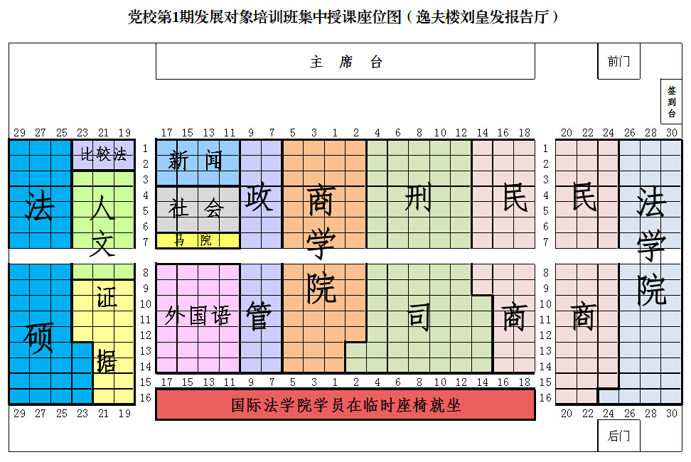 4.集中授课以学院为单位安排了固定区域,请学员熟悉本学院区域(见附件),按座位安排就坐。