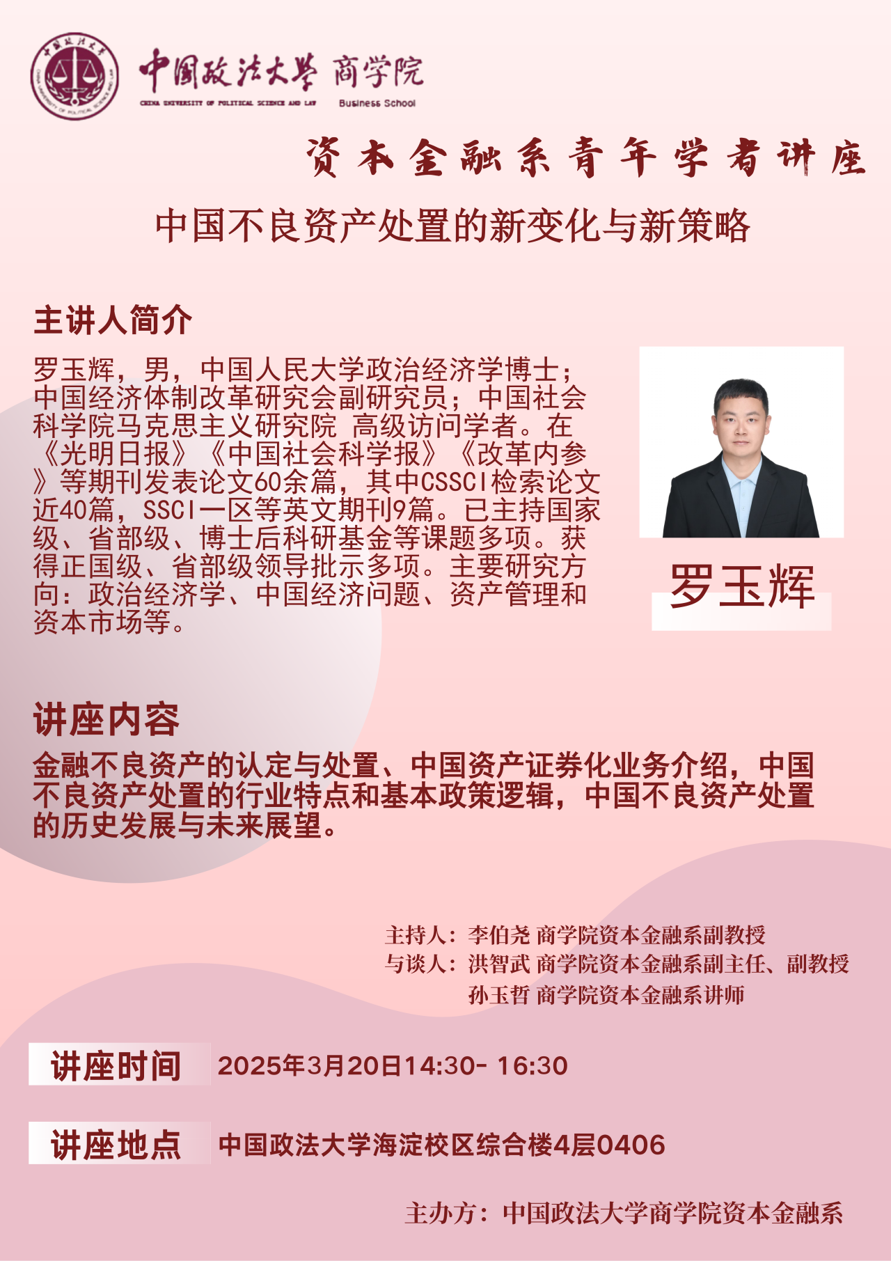 主 题:资本金融系青年学者讲座——中国不良资产处置的新变化与新策略