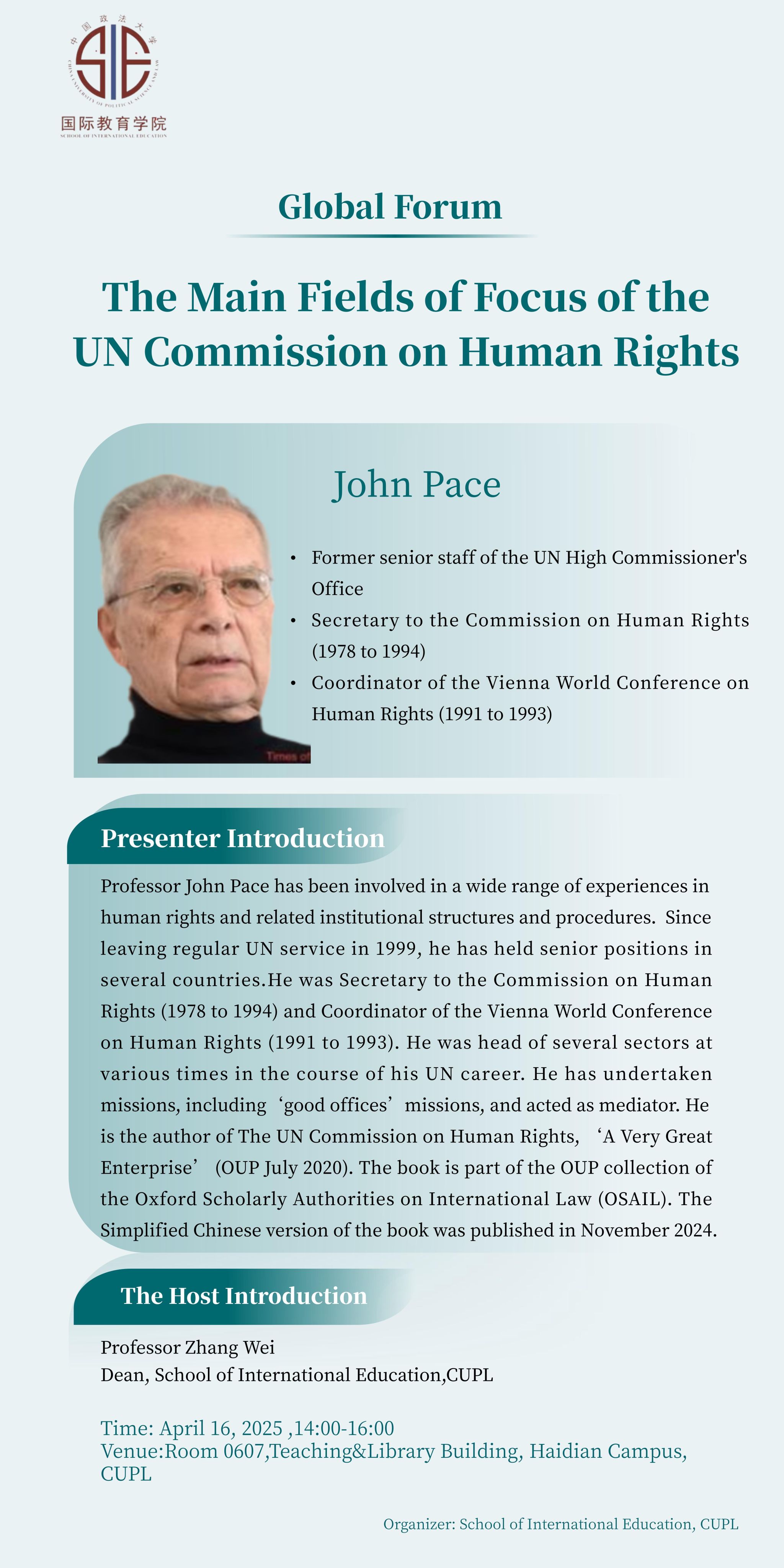 现将“联合国人权委员会的主要关注领域”讲座信息通知如下,欢迎感兴趣的师生积极参加: