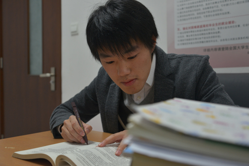 从大一入学开始,他就为自己制定了攻读双学位的目标,并脚踏实地付诸行动。深深感受到学习机会的来之不易,王威每天除了在第一排认真听课外,课余时间更是丝毫不敢松懈,每天在自习室一定要坚持到清场前的最后一分钟,平均下来每天至少5个小时的自习时间,日日自习间四年匆匆掠过。被问及每天披星戴月的学习生活中有没有疲倦过,王威说,自己每天晚上扪心自问,如果这一天没有做什么有意义的事情才会觉得愧疚。诚然,奔向梦想的路上谁人敢轻言疲惫。